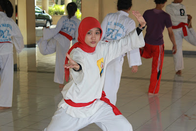 Exercise Sports Martial Arts Silat in UIN JakartaHeup ... Heup ... Heup ... That's the cue that is confirmed by Haris Fauzi started gymnastics when a combination of empty hand technique on the occasion of the exercise Shielding Yourself UIN Jakarta, Sabtu/28/04/2012.Personal Shield martial UIN Syarif Hidayatullah Jakarta Ciputat routine daily training shirt and Saturday with a training schedule this routine, it is hoped that members can control the various techniques that dilatihkan. In the end, may become a man who knows himself and serve the Lord.